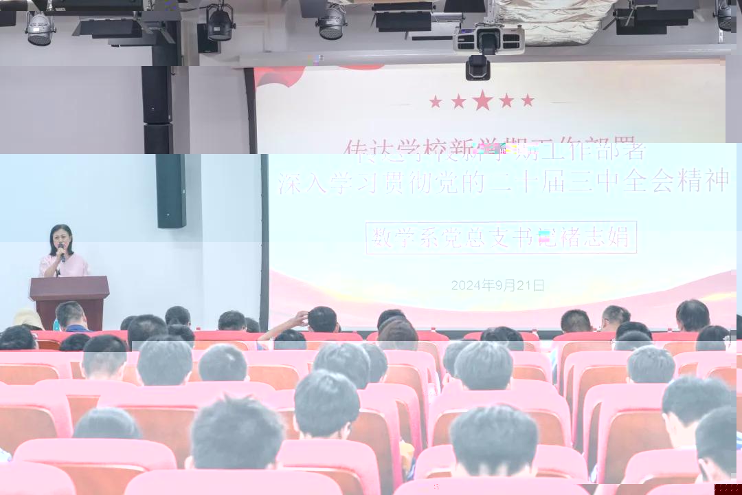 2024年9月21日上午,太阳集团1088vip數學系在番禺校區知識産權大樓316教室召開全系教工大會。太阳集团1088vip黨委書記羅國偉、數學系黨總支書記褚志娟及數學系全體教工和大一新生出席本次會議。會議由褚志娟主持。